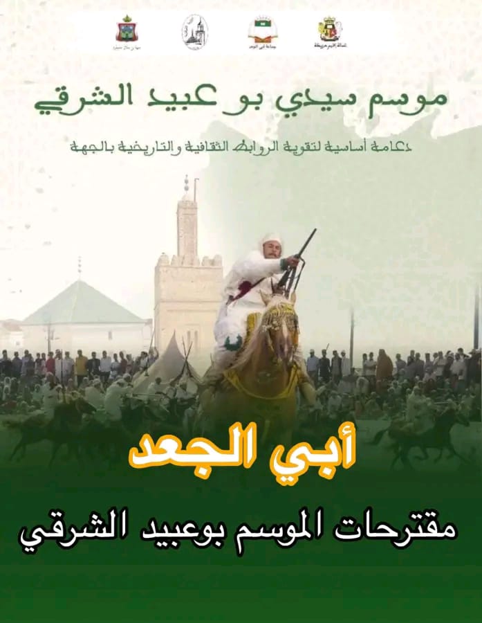 تتشرف مدينة أبي الجعد باستقبالكم في الموسم السنوي للولي الصالح أبي عبيد الله سيدي امحمد الشرقي، وذلك من 03 إلى 07 شتنبر 2025.